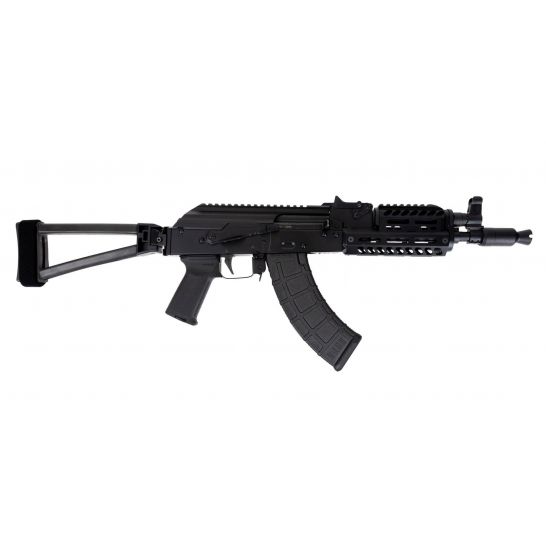 The 4150 barrel is nitride treated for accuracy and durability and is pressed into a new hammer forged front trunnion to ensure the longevity AK-47s are known for. The hardened steel 1mm receiver features a mil-spec style single hook trigger, and side rail mount. The front trunnion and bolt carrier are engraved with GF3 to designate the GF3 hammer forged model. The pistol is finished with a Magpul polymer handguard, SB Tactical SBA3 Pistol Brace, and Magpul AK-47 polymer grip; Pistol ships with 30 round magazine (where allowed by law).