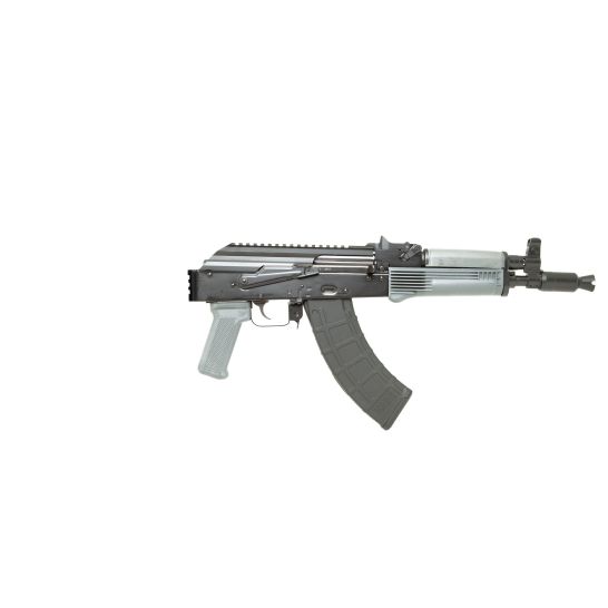 The 4150 barrel is nitride treated for accuracy and durability and is pressed into a new hammer forged front trunnion to ensure the longevity AK-47s are known for. The hardened steel 1mm receiver features a mil-spec style single hook trigger, and side rail mount. The front trunnion and bolt carrier are engraved with GF3 to designate the GF3 hammer-forged model. The pistol is finished with classic polymer handguards, PSA Picatinny Adapter, and a classic AK grip; Pistol ships with 30 round magazine (where allowed by law).