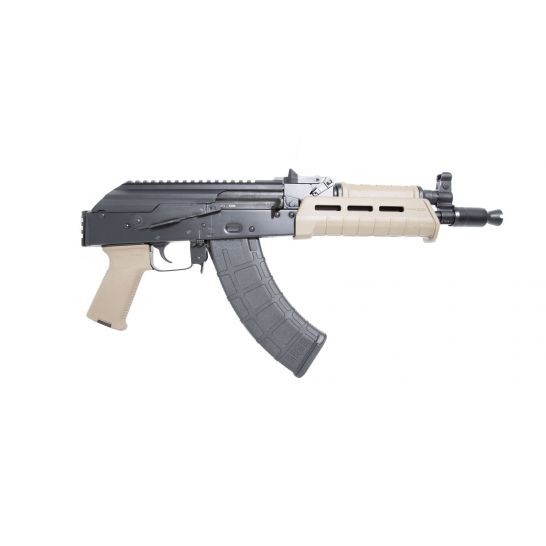 The 4150 barrel is nitride treated for accuracy and durability and is pressed into a new hammer forged front trunnion to ensure the longevity AK-47s are known for. The hardened steel 1mm receiver features a mil-spec style single hook trigger, and side rail mount. The front trunnion and bolt carrier are engraved with GF3 to designate the GF3 hammer-forged model. The pistol is finished with a cheese grater upper handguard, redwood lower handguards and grip, Picatinny adapter, and a 30 round magazine (where allowed by law).