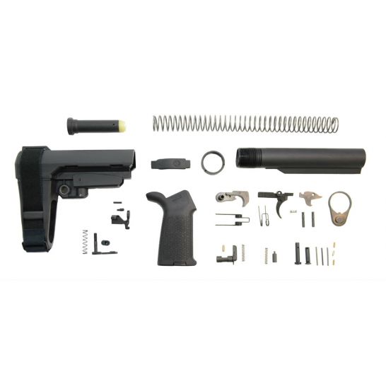 Includes Magpul Orgional Equipment Black (MOE) Stock, MOE grip, MOE Trigger Guard, Palmetto State Armory Lower Parts Kit (without fire control group) and Mil-Spec buffer tube assembly.